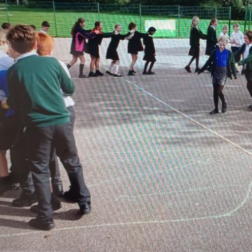 We became red blood cells and travelled around a circulatory system drawn out on the playground, collecting oxygen from the lungs and taking it back through the heart to the body and brain.