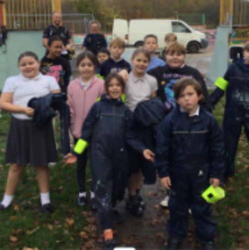 The Mini Police Cadets were hard at work on Thursday afternoon ,doing their bit for the local community. They were helping to re-paint the Skate Park.