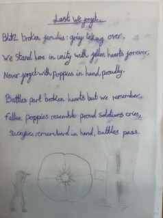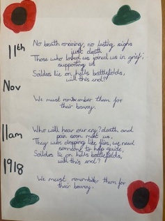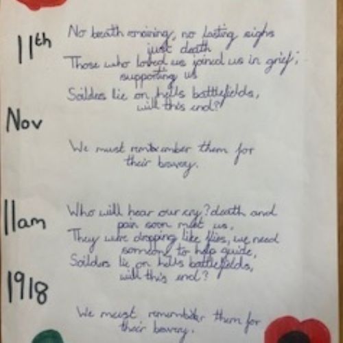 These poems were shared in our Remembrance Assembly this week and the children would like to share them with everyone. Thank you to Eden, Ryan, William, Elliana, Louie, Jenson, Dylan, Florence and James.