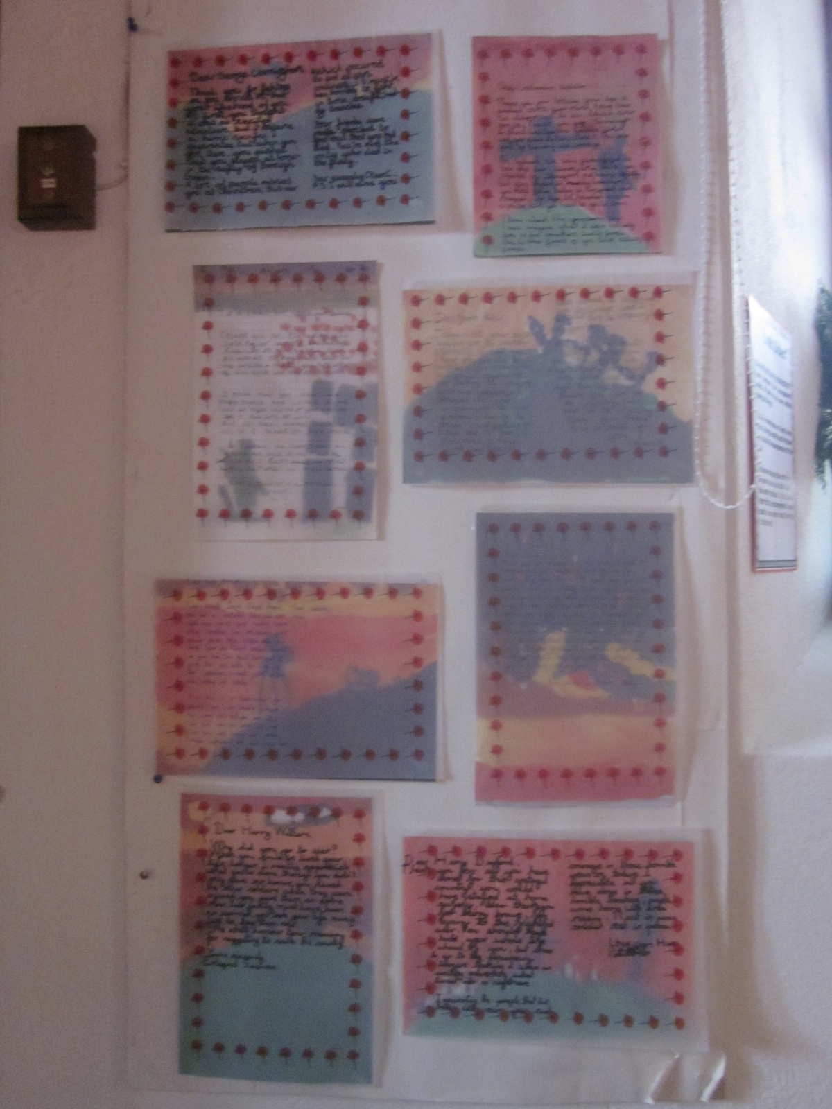 Here are some more photographs of our art work which formed part of the local project to mark 100 years since the end of The Great War. Our work was displayed in the Church of the Good Shepherd and is still up in the local library.